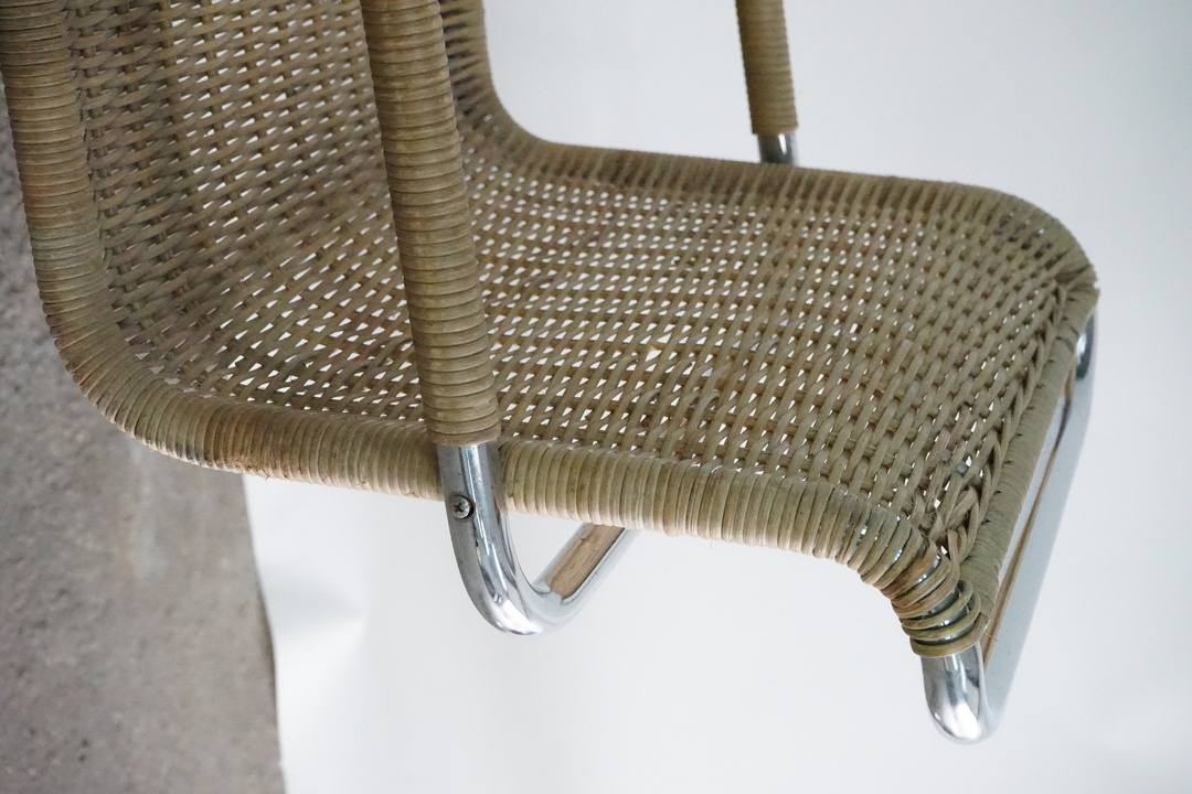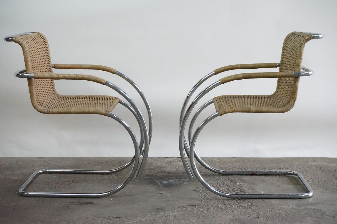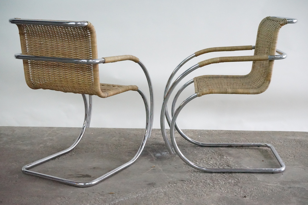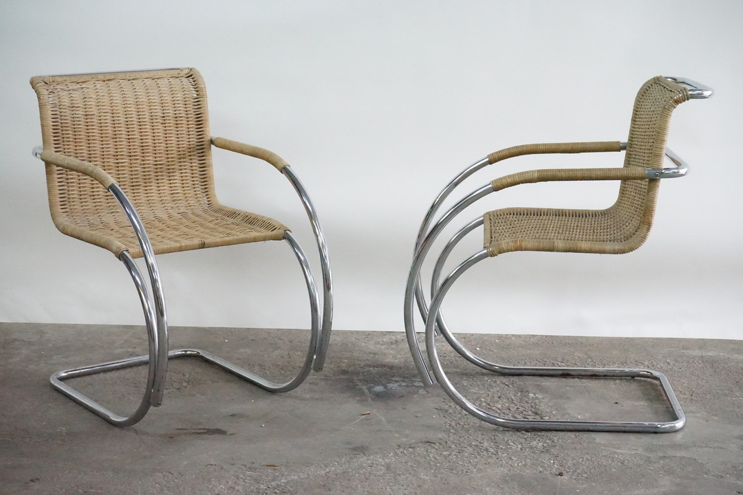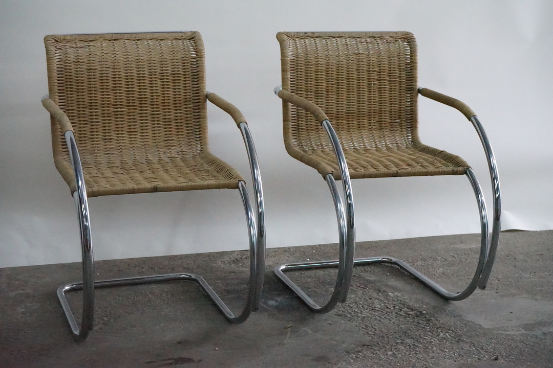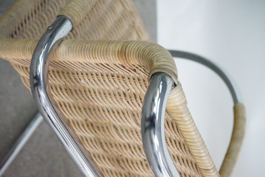 Chrome and Rattan Armchair in the Style of Mies van der Rohe