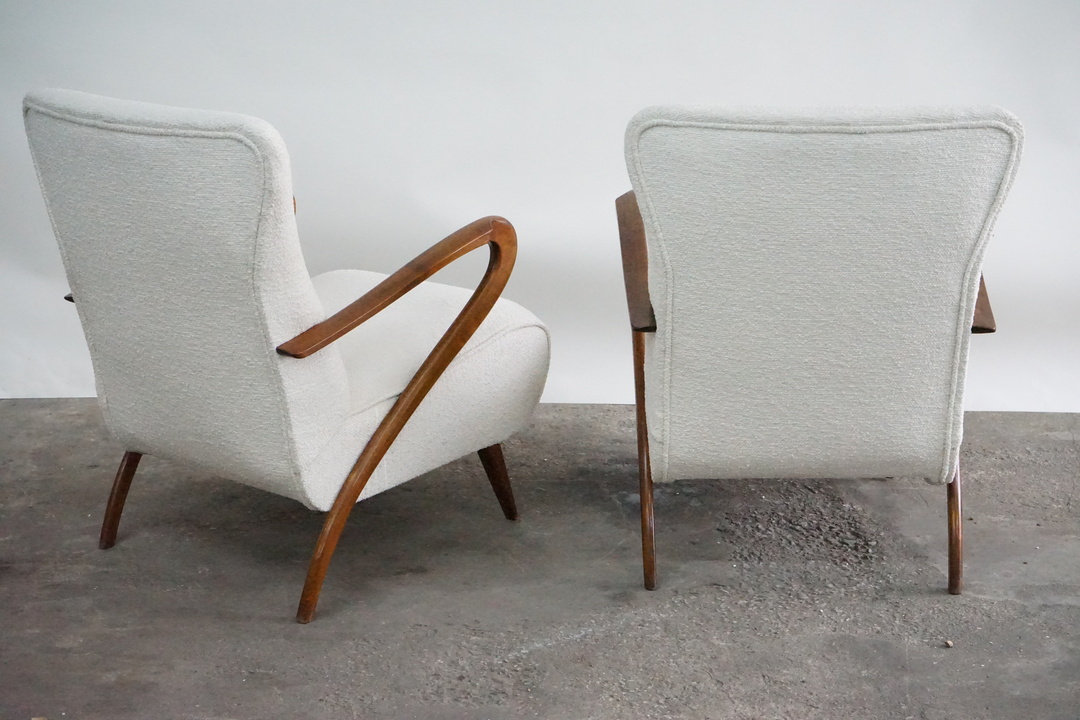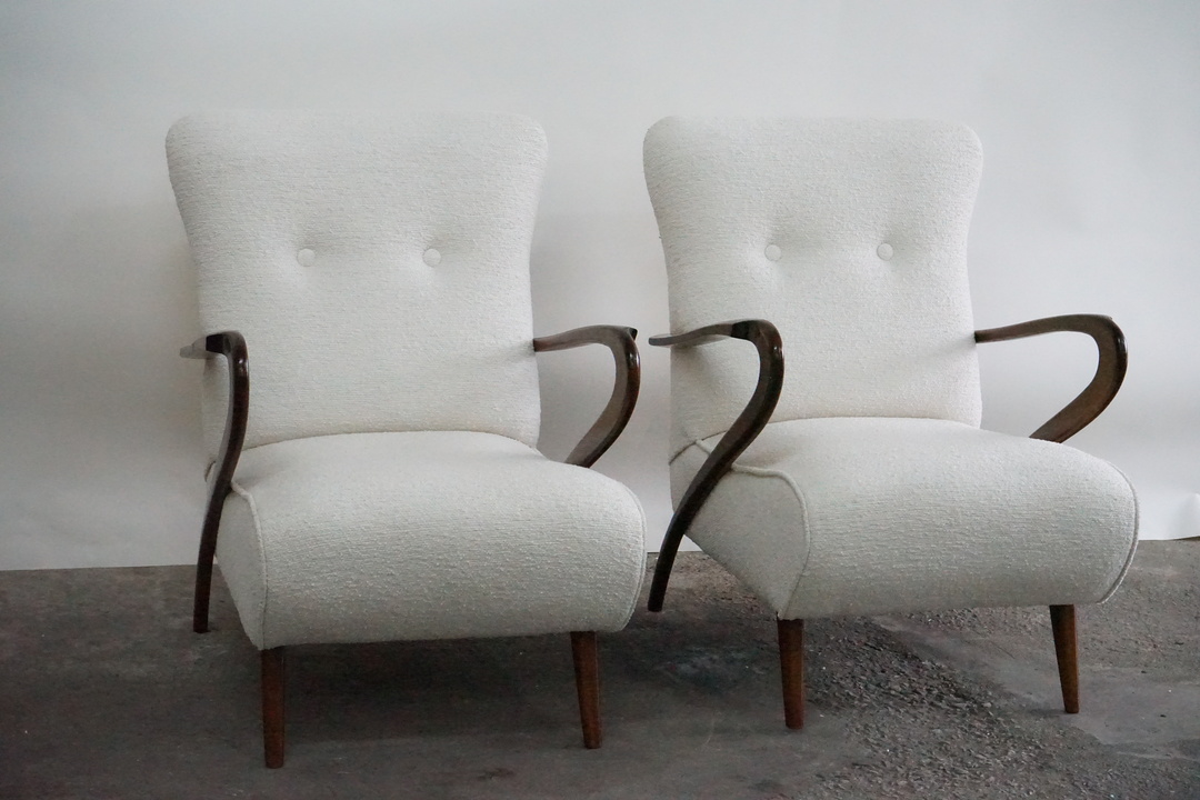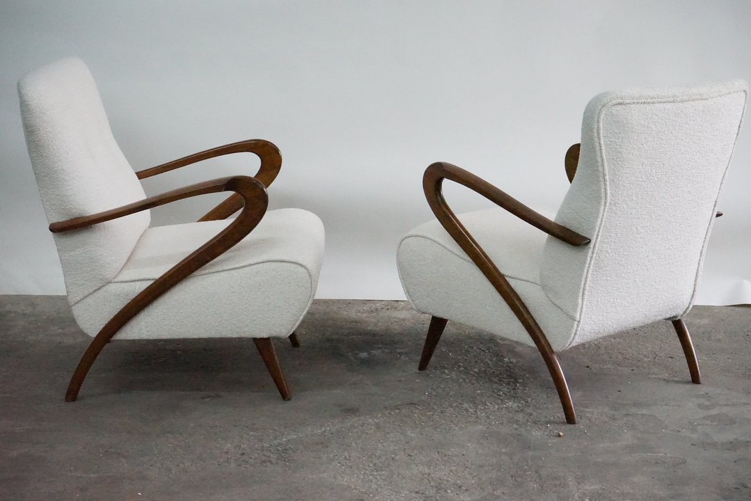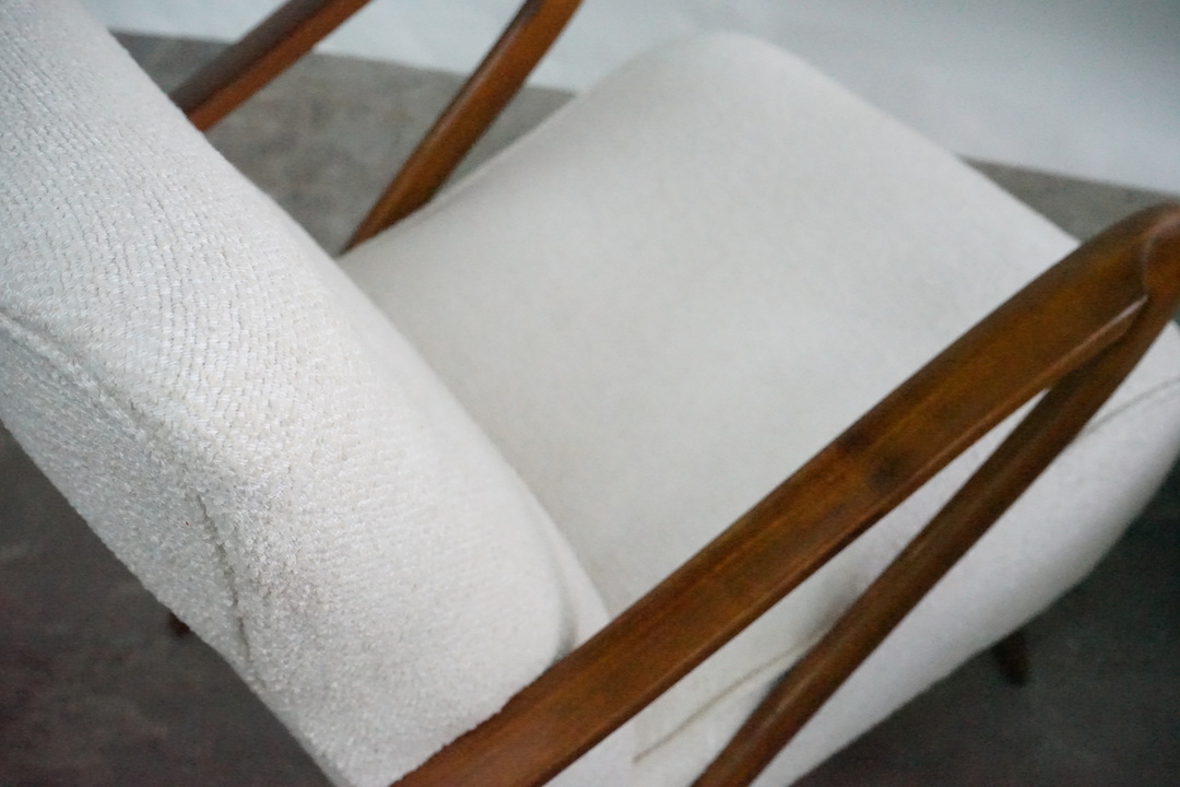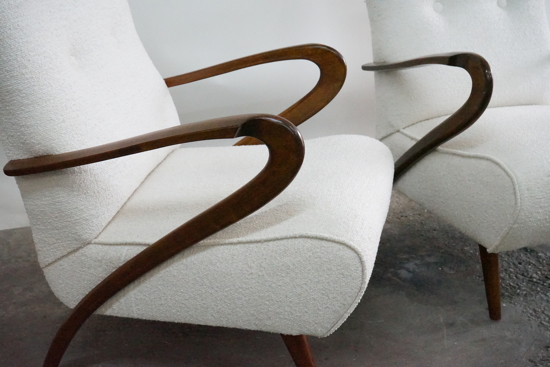 Upholstered Armchair with Sculptural Wooden Arm, Attributed to Paolo Buffa
