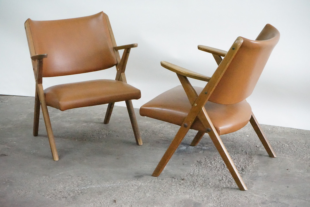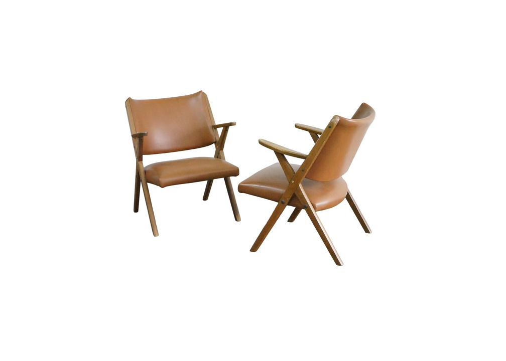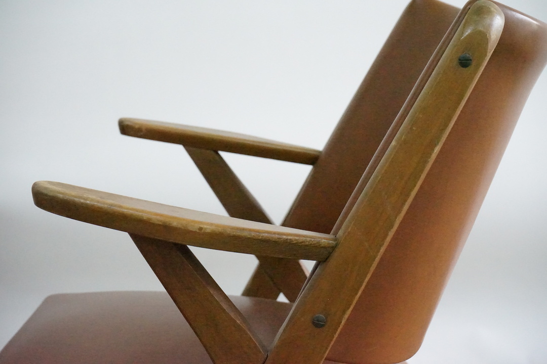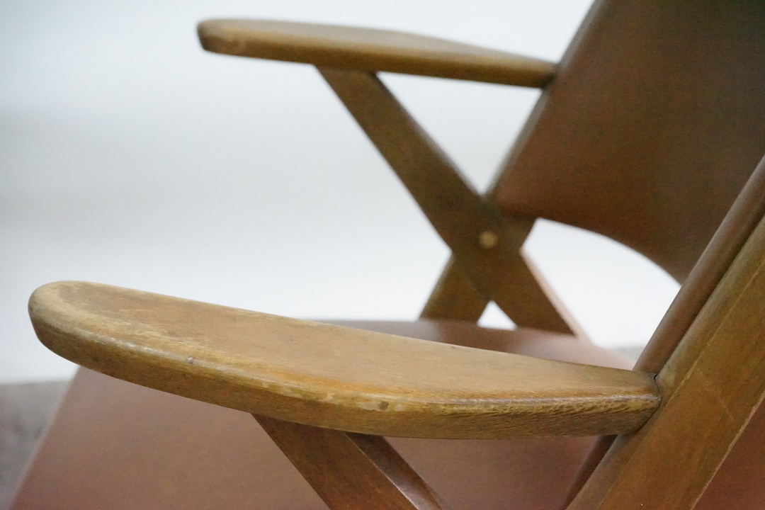 Mid-Century Armchair with Leather Upholstery and Oak Frame