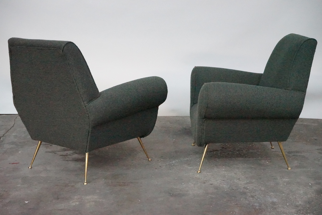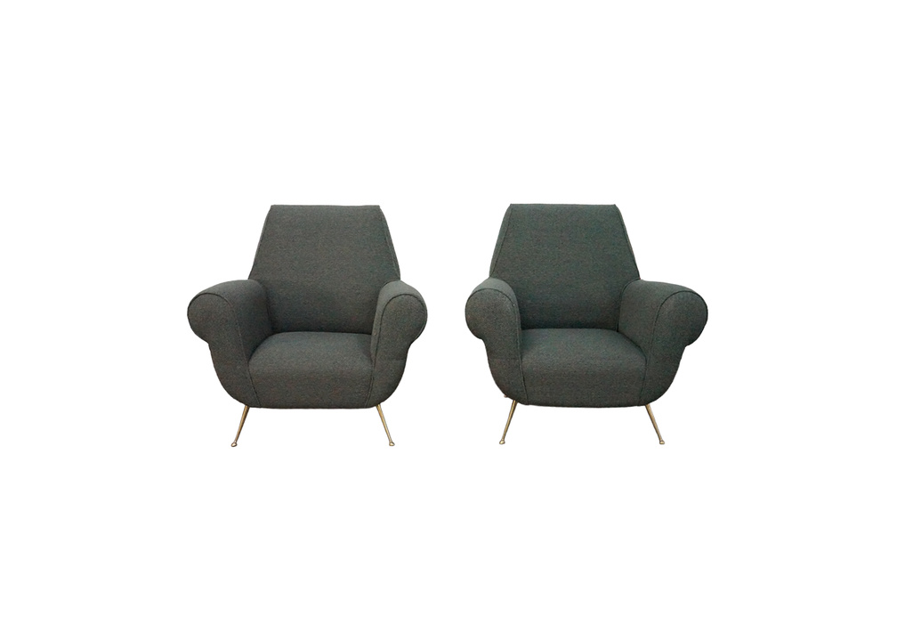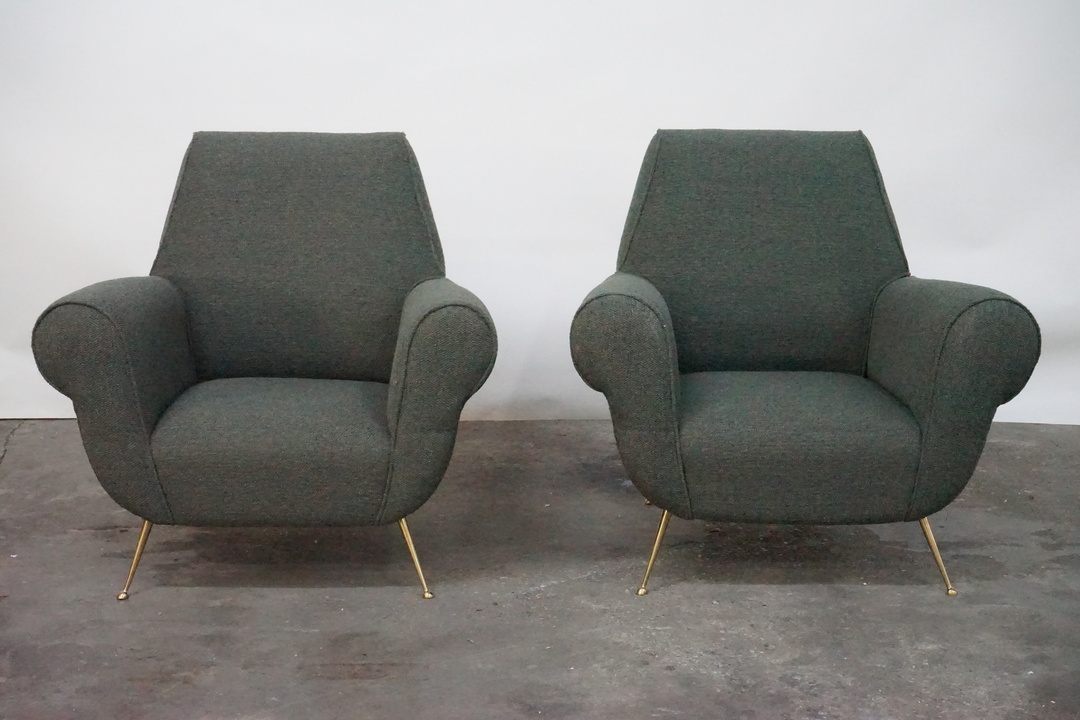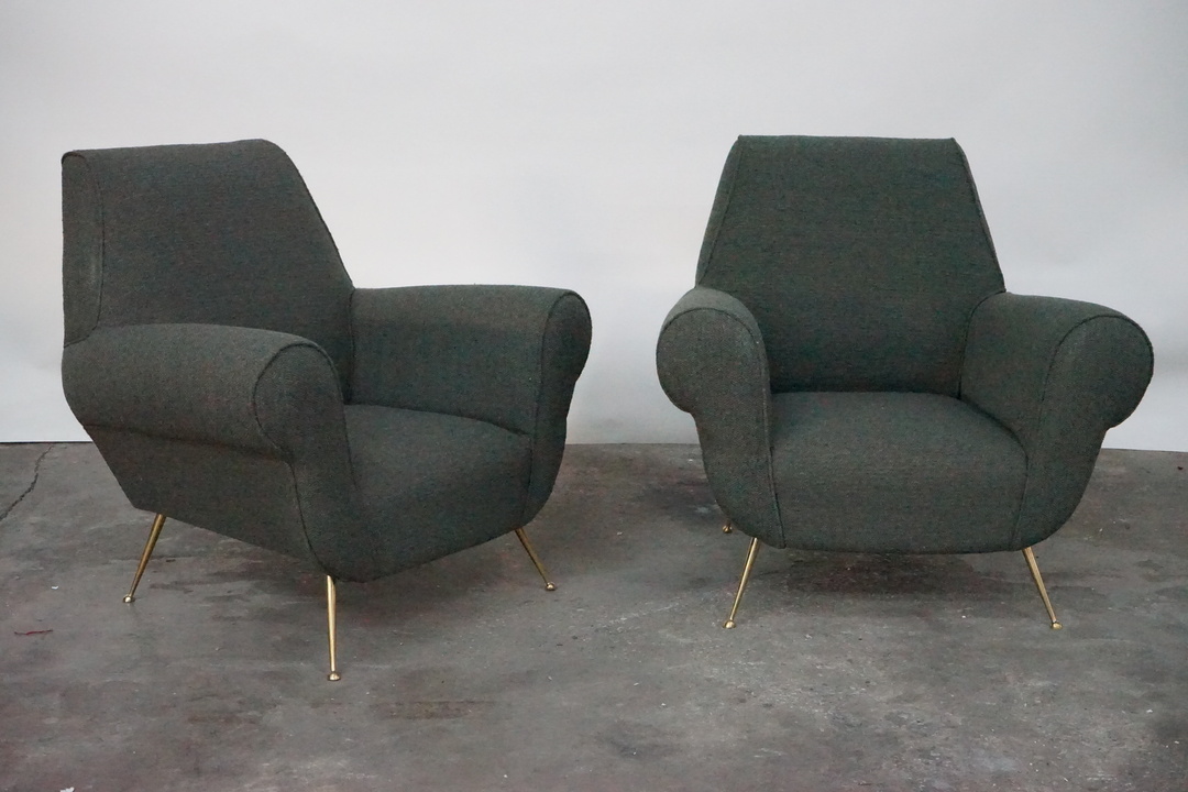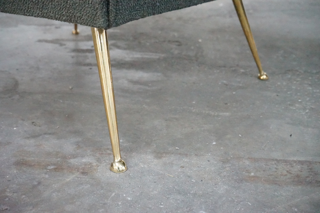 Newly Upholstered Armchair with Brass Feet, In the Style of Gio Ponti
