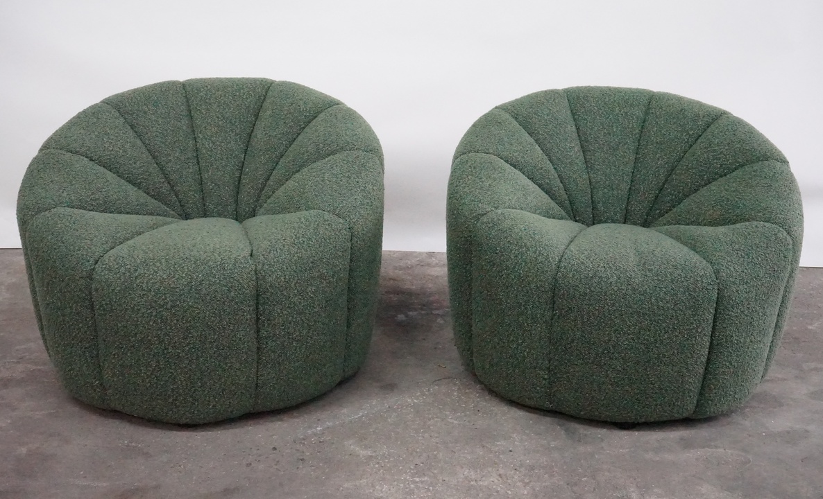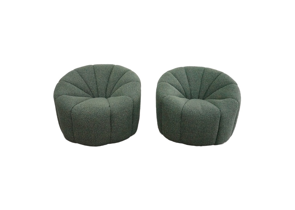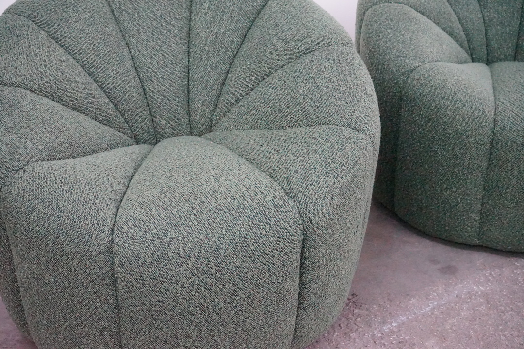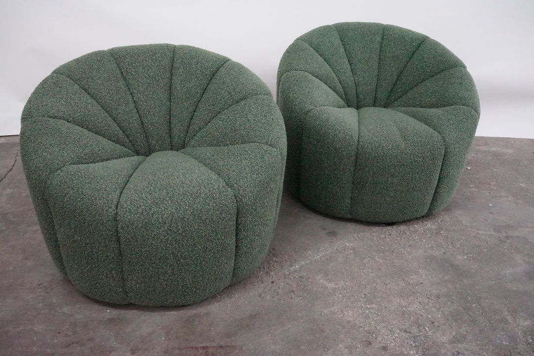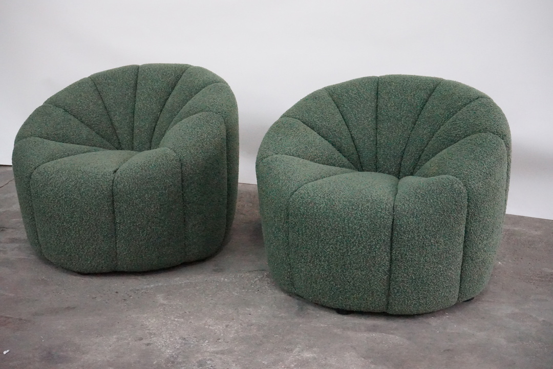 Channel Tufted Tubchair in the style of Pierre Paulin, Newly Recovered in Green Boucle Fabric