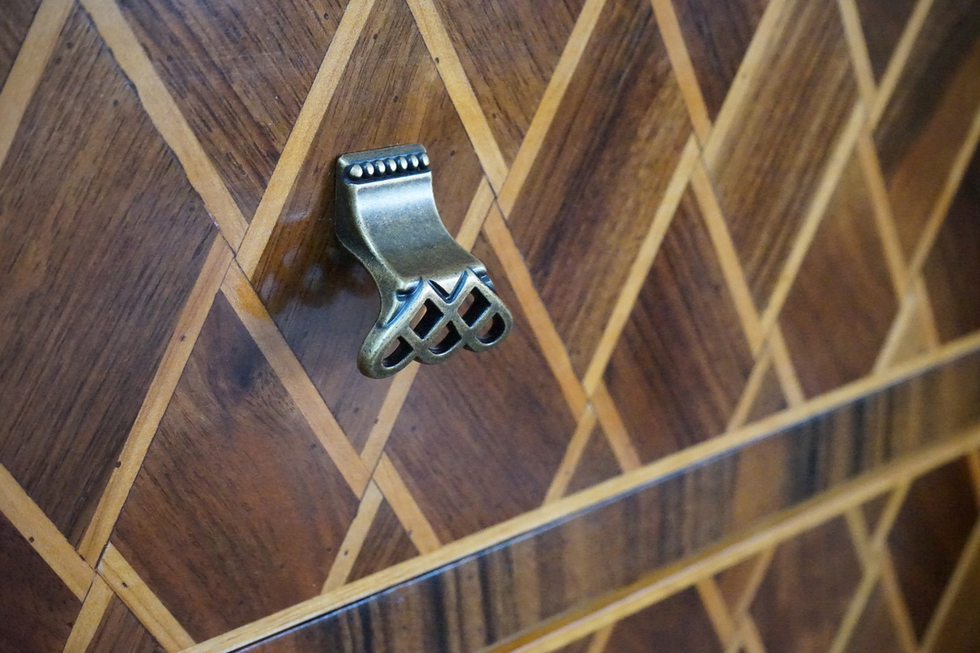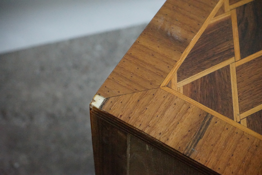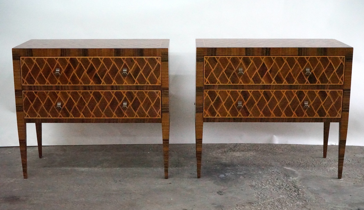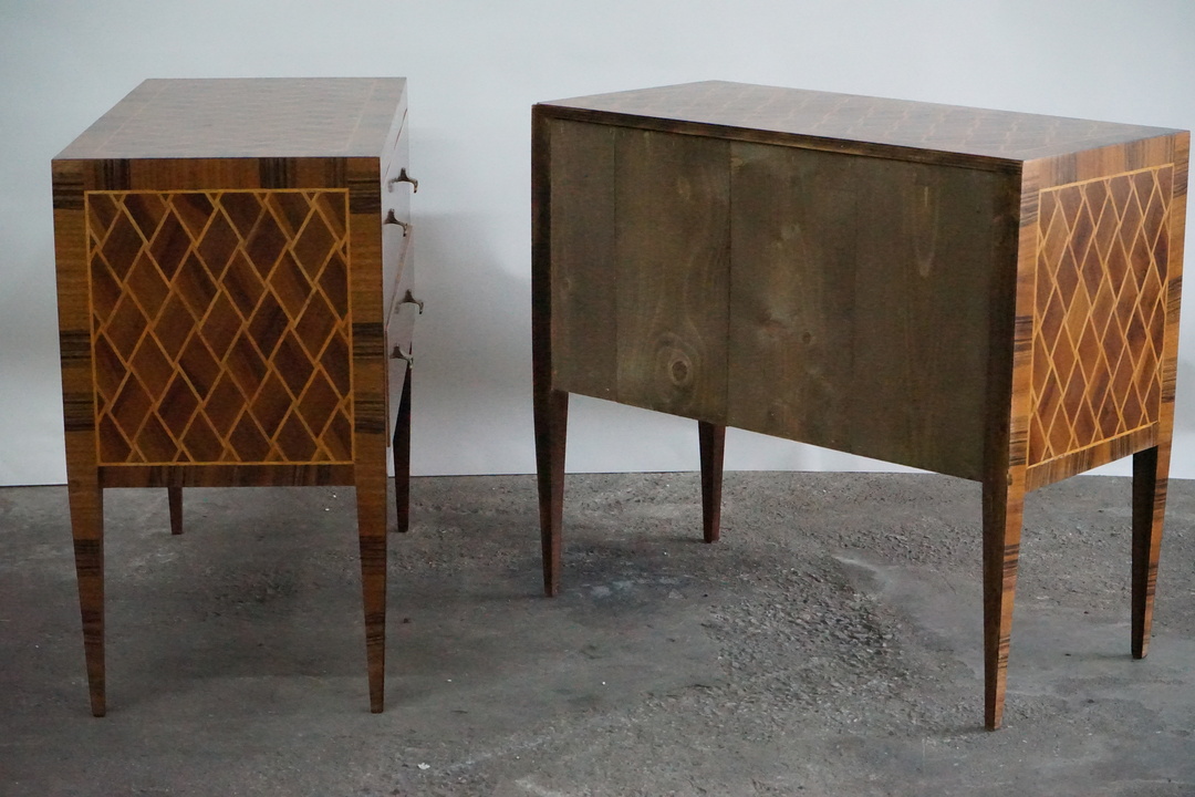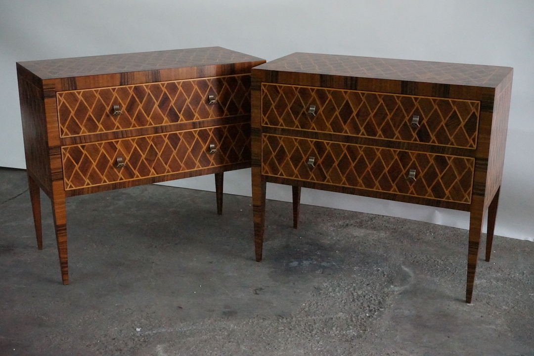 Two-Drawer Parquetry Chest with Parquetry and Brass Hardware, Italian