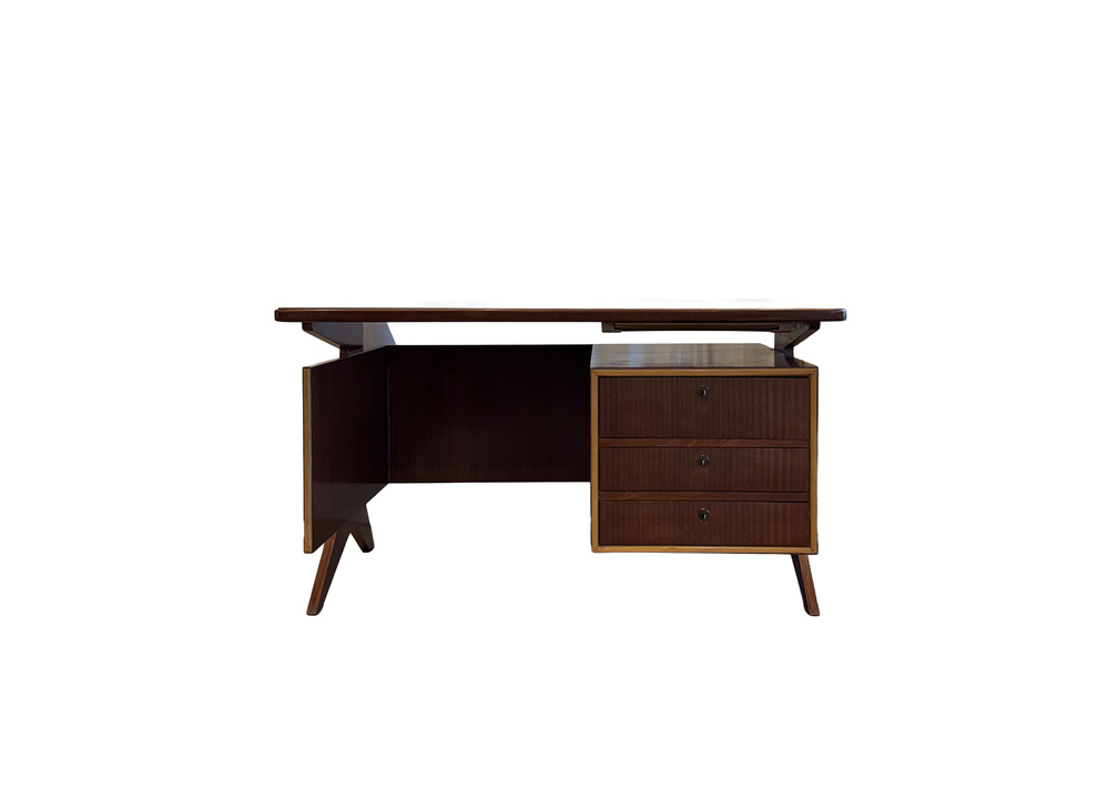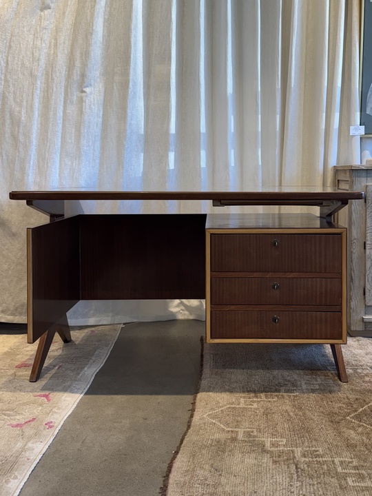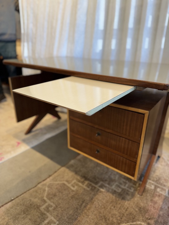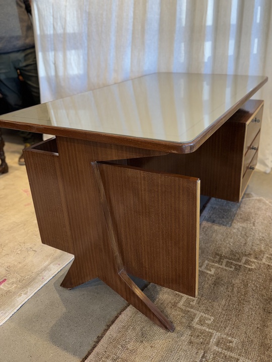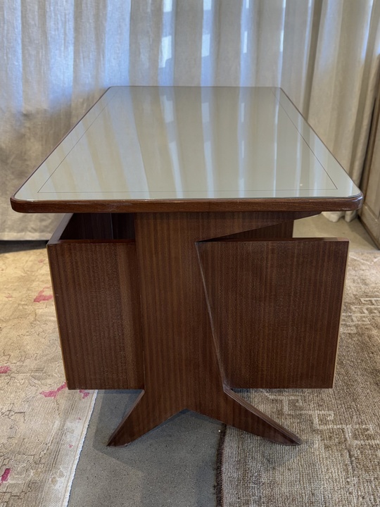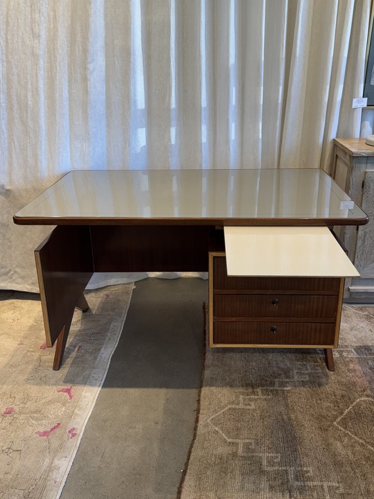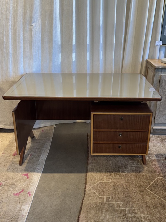 Mid Century Desk with Inlay Glass Top in the style of Marcel Gasboin, c.1950 France