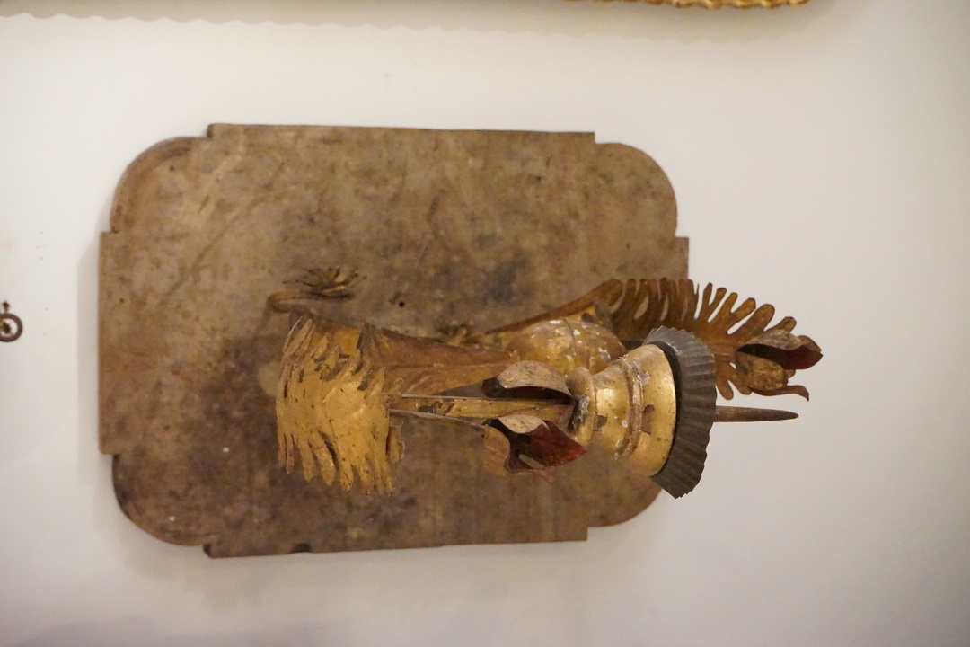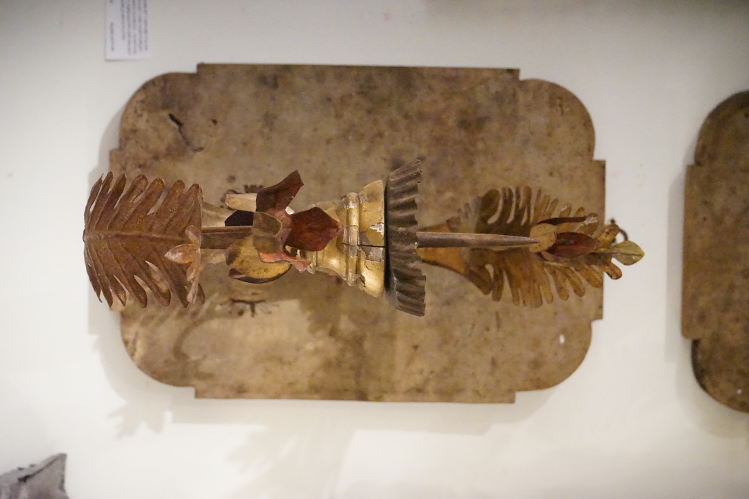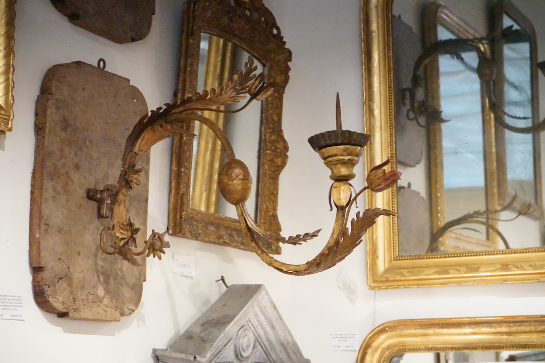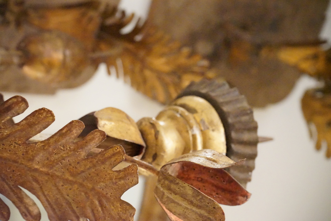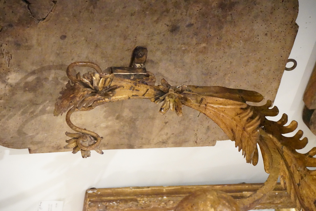 Very Rare 18th Century Italian Rococo Gilt and Hand Forged Iron Candle Sconces. Acanthus Leaf & Flower Motifs and Walnut Shield Back Plates