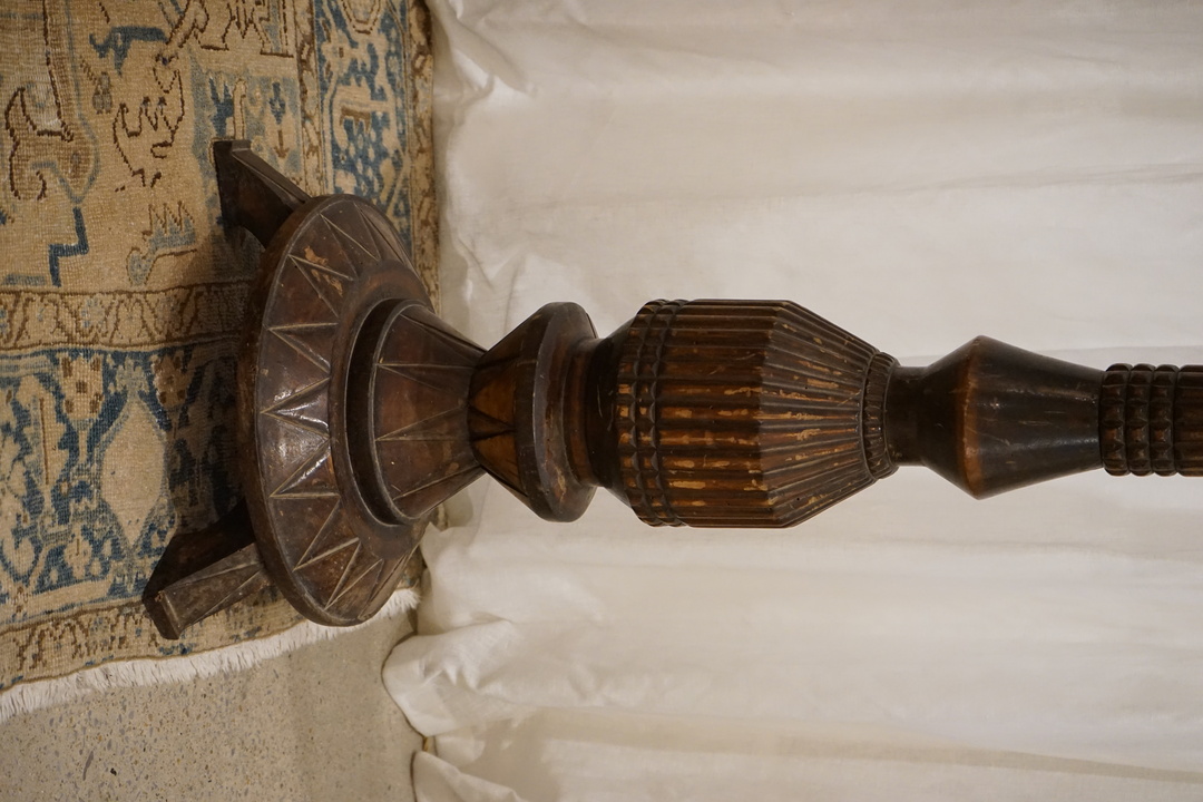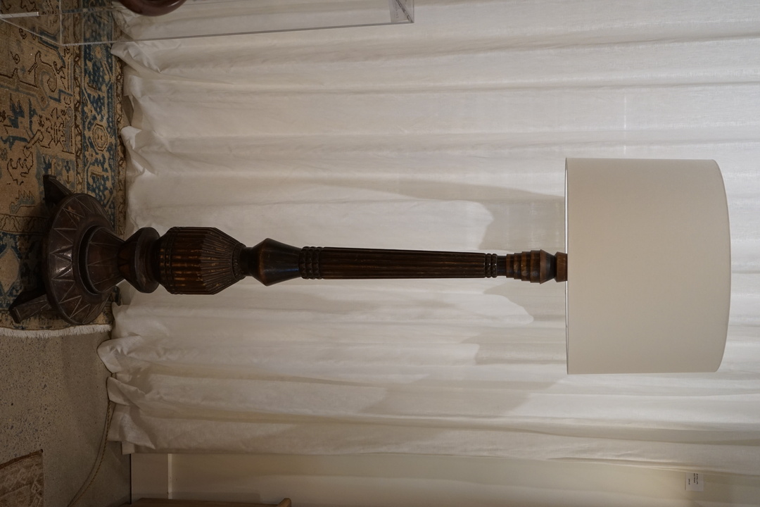 WOODEN CARVED FLOOR LAMP, NEWLY REWIRED WITH NEW SHADE