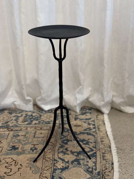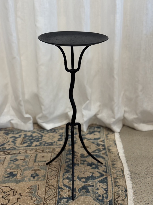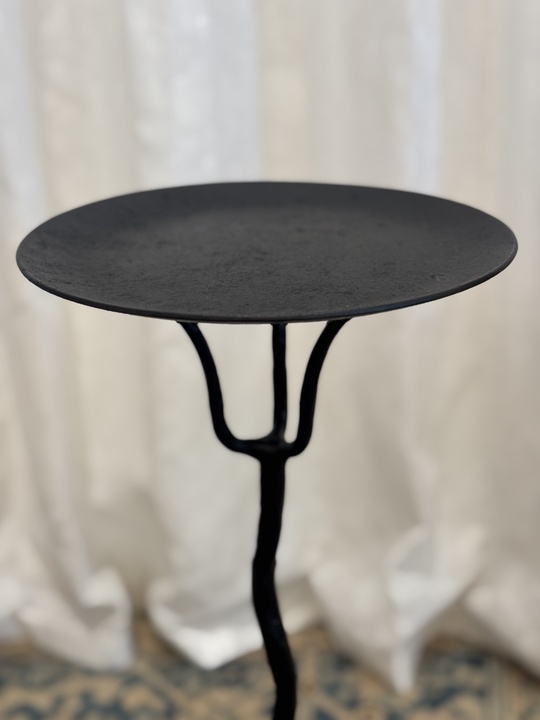 Hand Forged Wrought Iron Curved Three-Legged Round Top Table