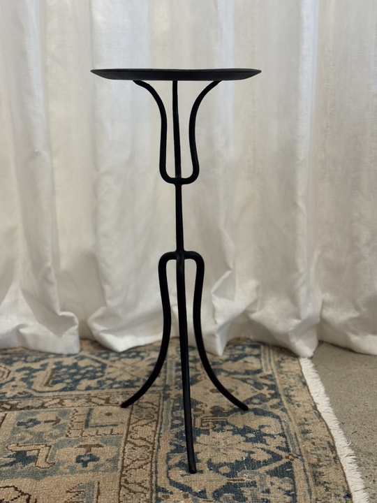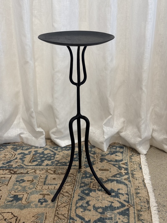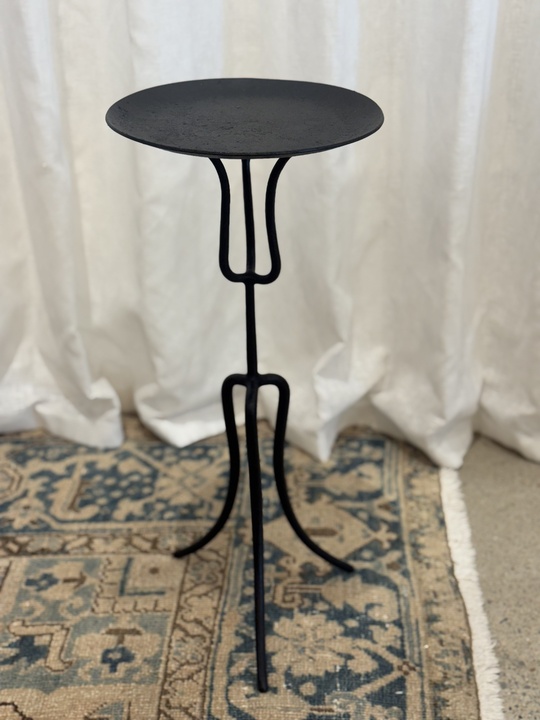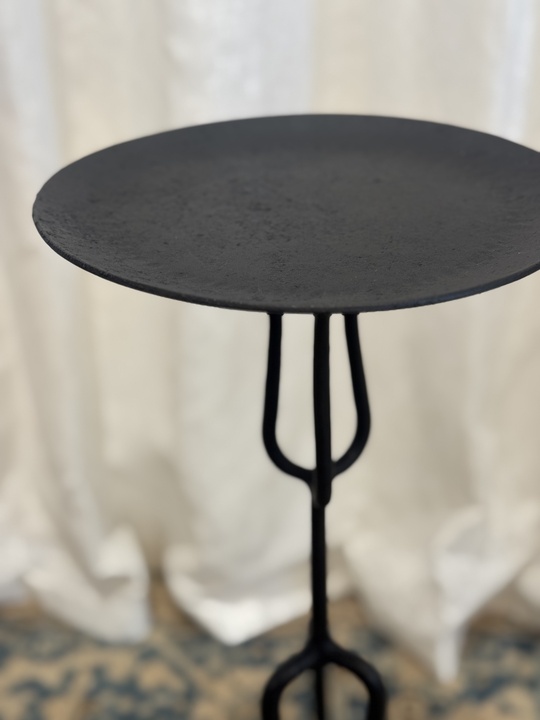HAND FORGED WROUGHT IRON THREE-LEGGED ROUND TOP TABLE