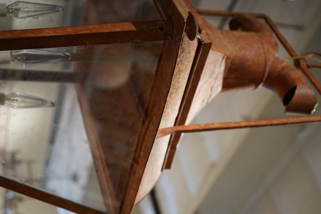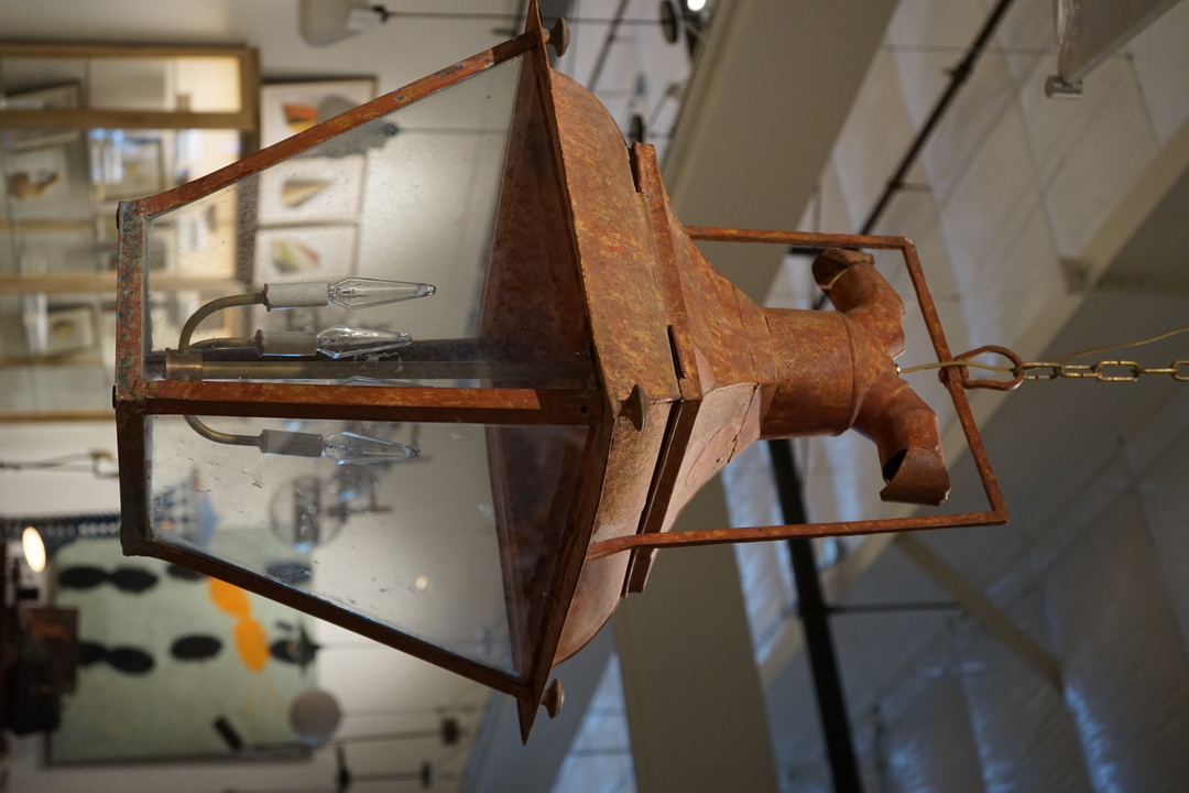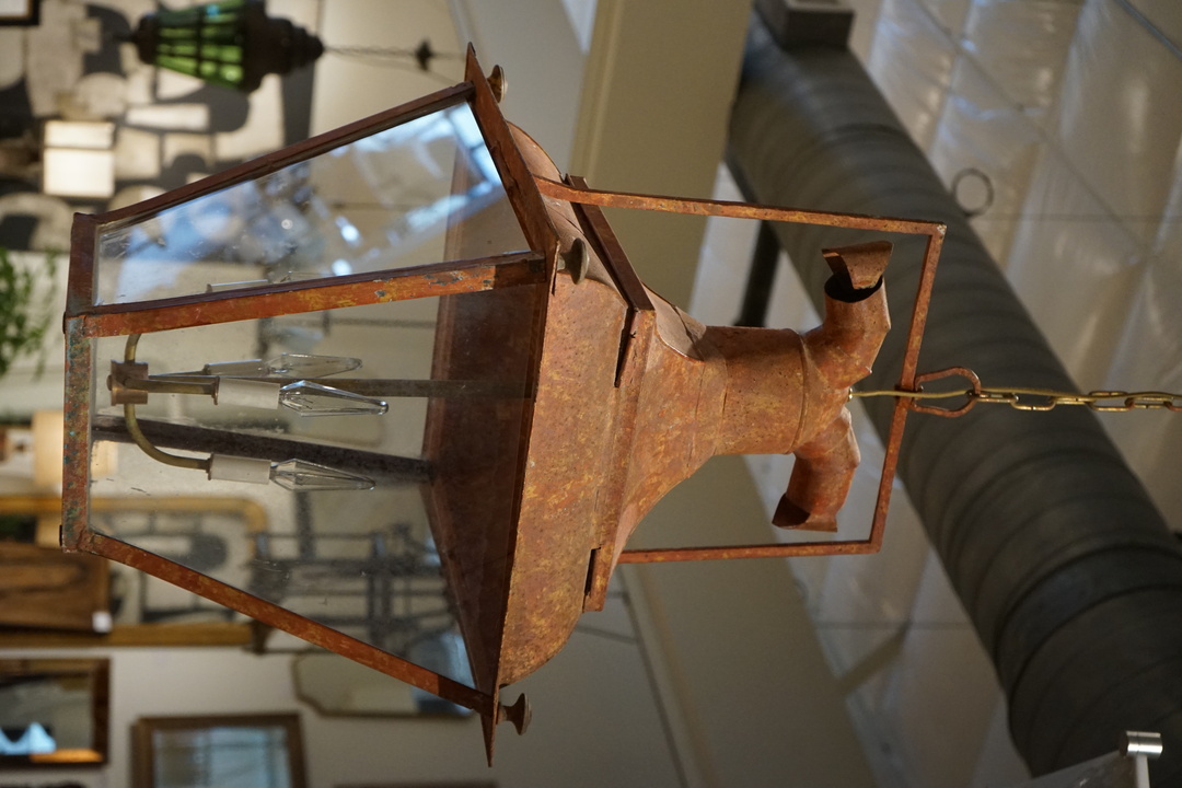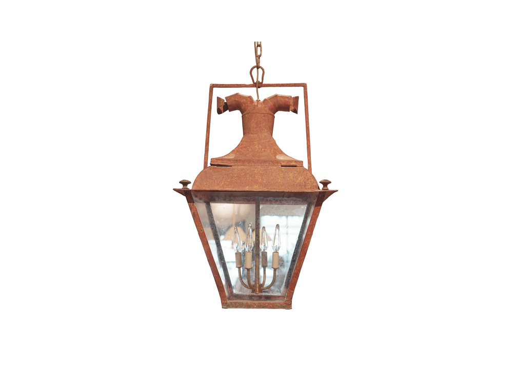 Unusual Painted Iron Lantern with Square Yoke, Newly Rewired