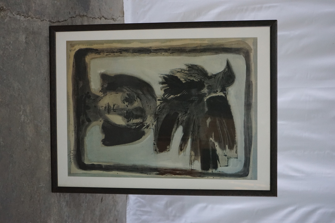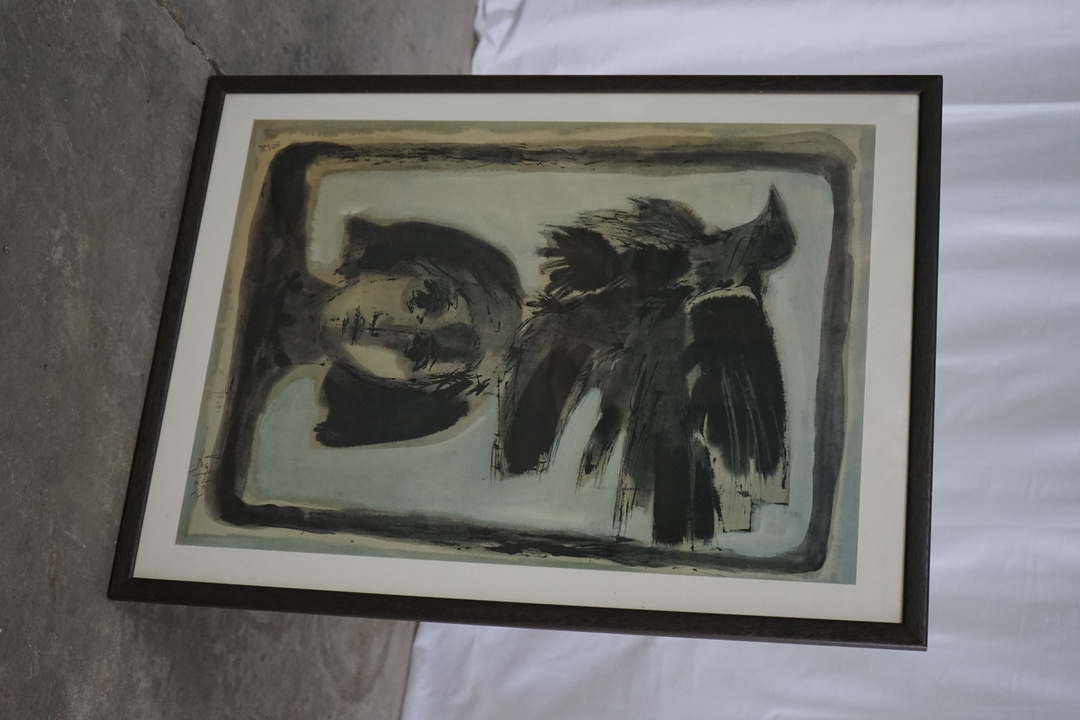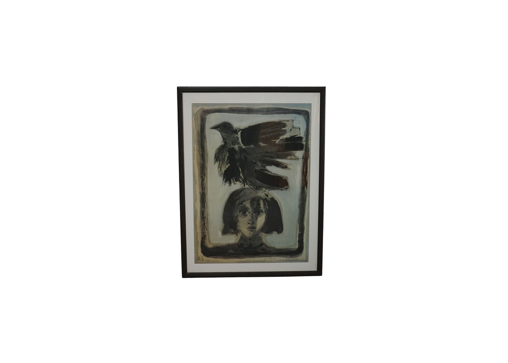 LITHOGRAPH PRINT OF GIRL WITH CROW, UNSIGNED,