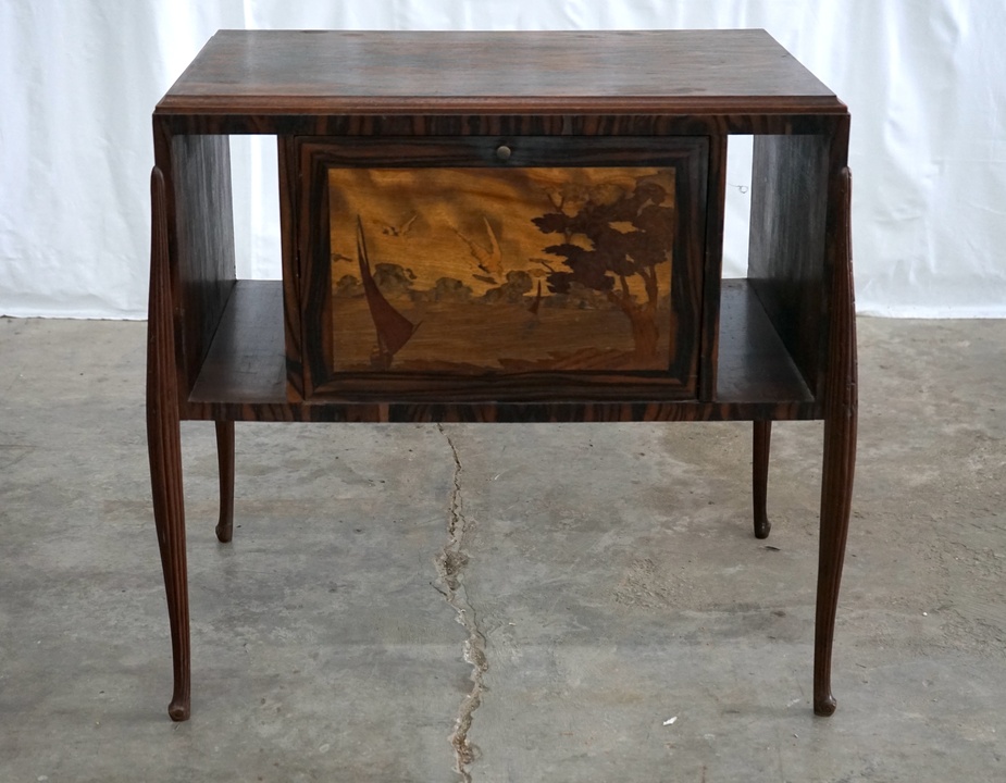 1940's FRENCH VENEERED MACASSAR DRESSING TABLE WITH DROP DOWN DOOR