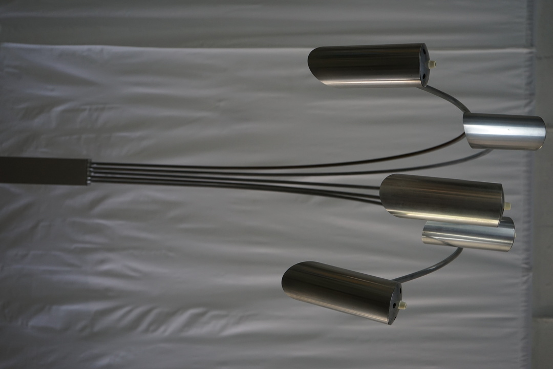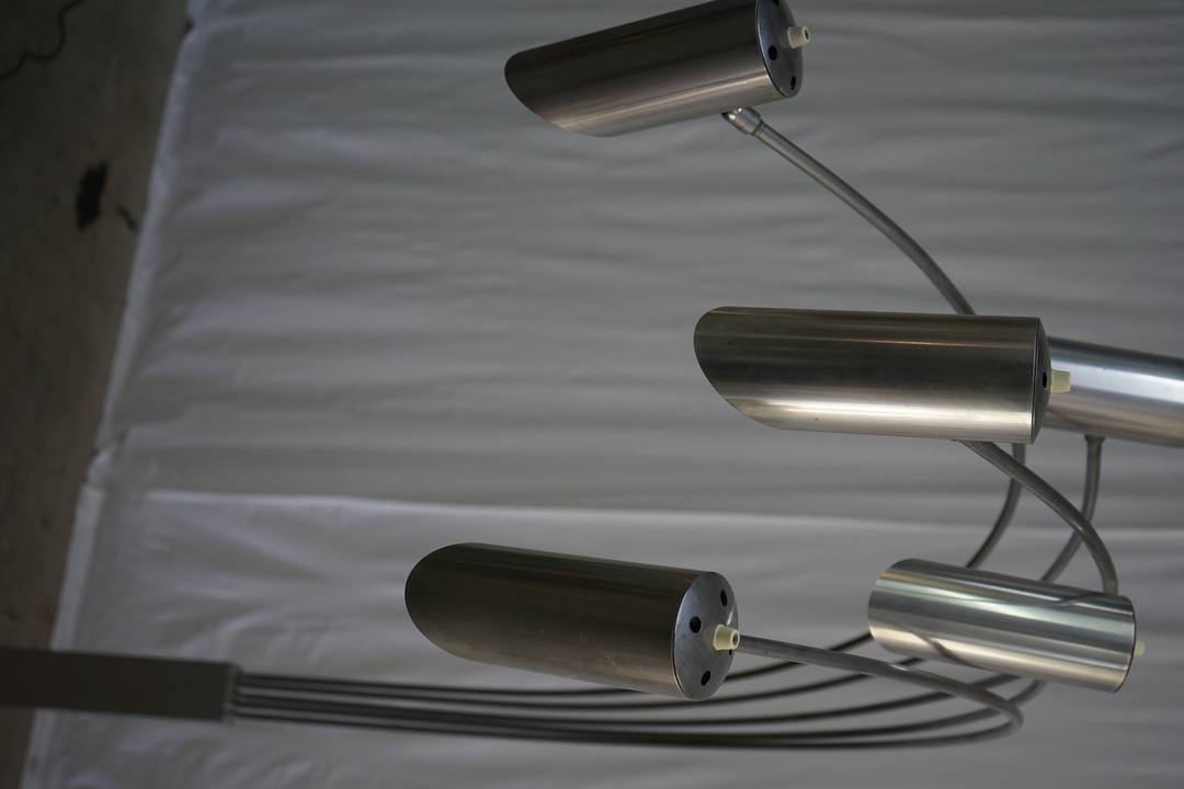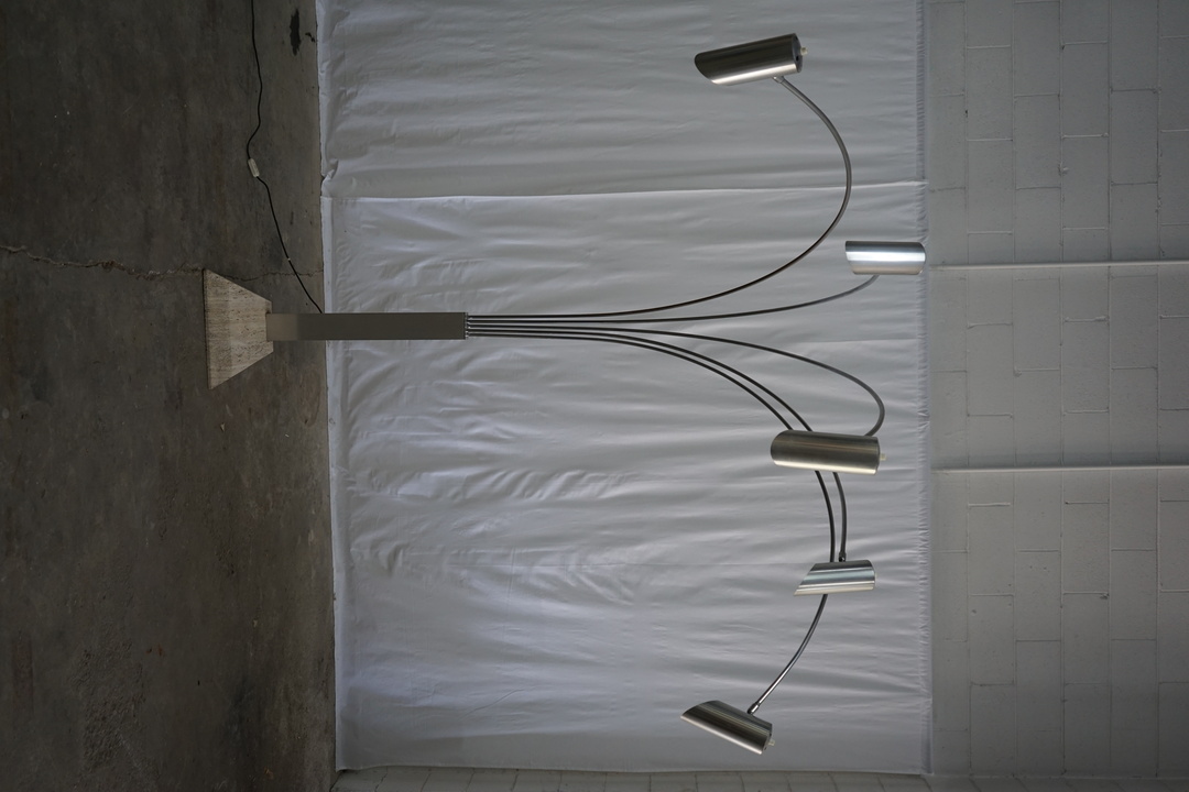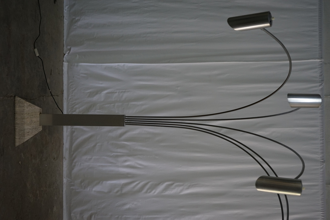 Base is 16" W x 16" D x 3" H. Lights are articulating. *Not wired for US standard*
