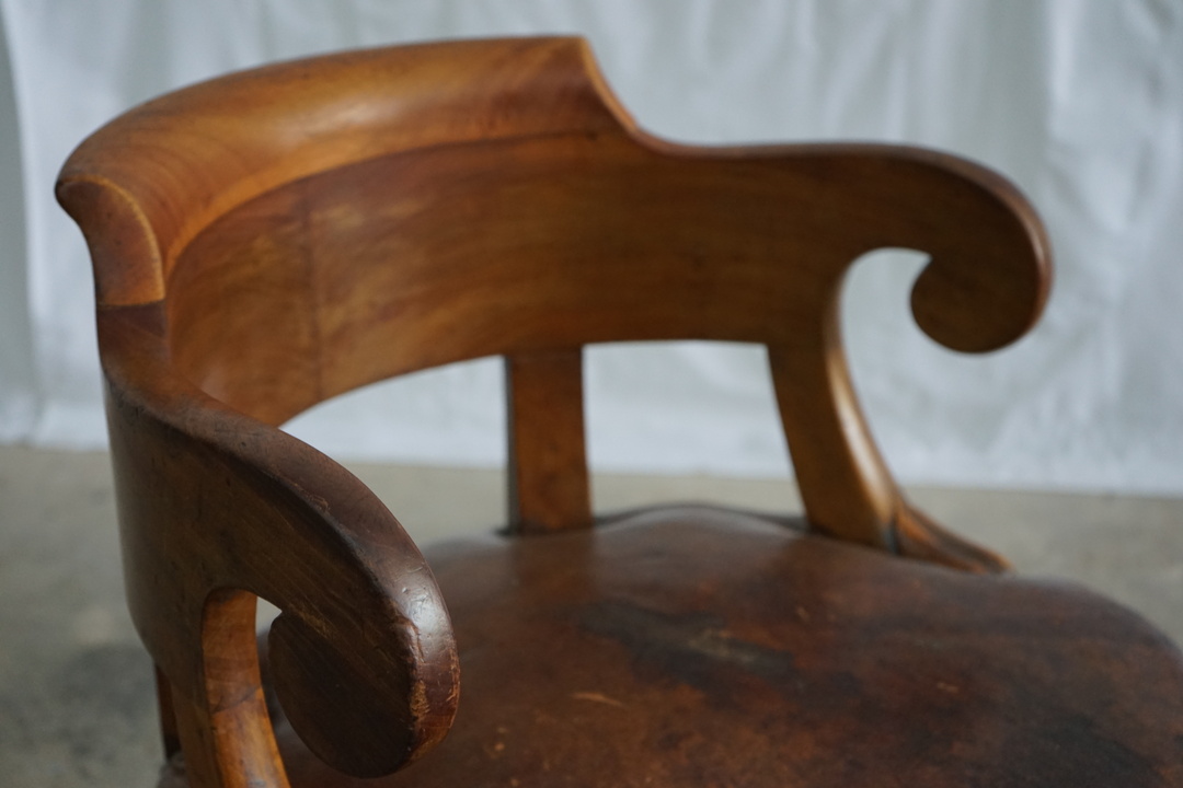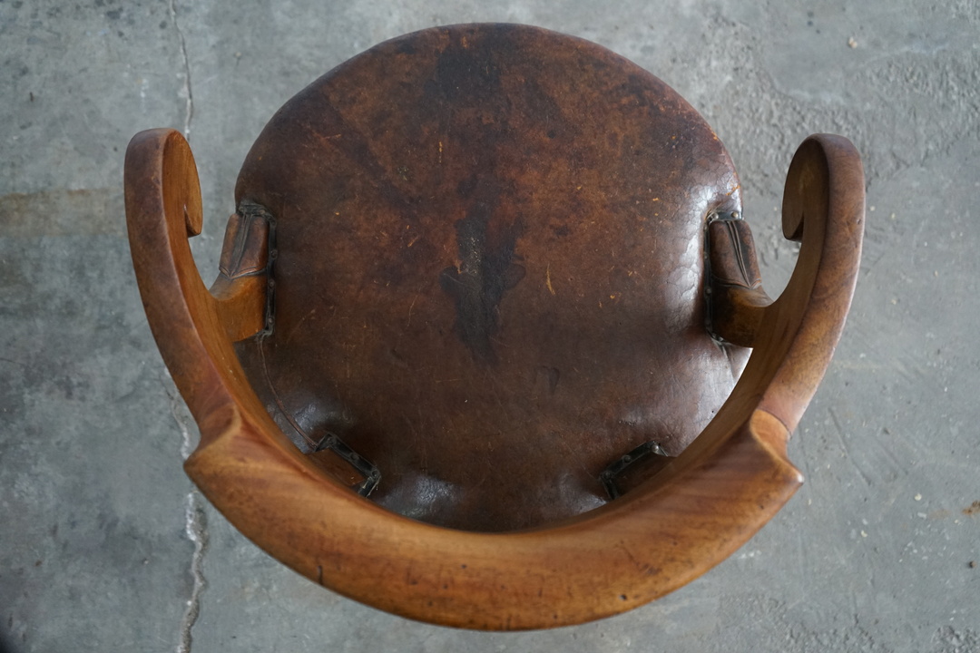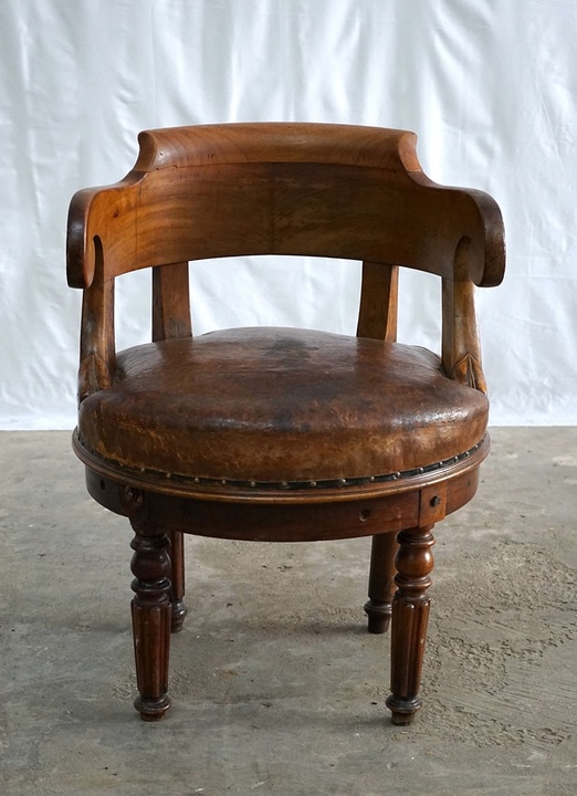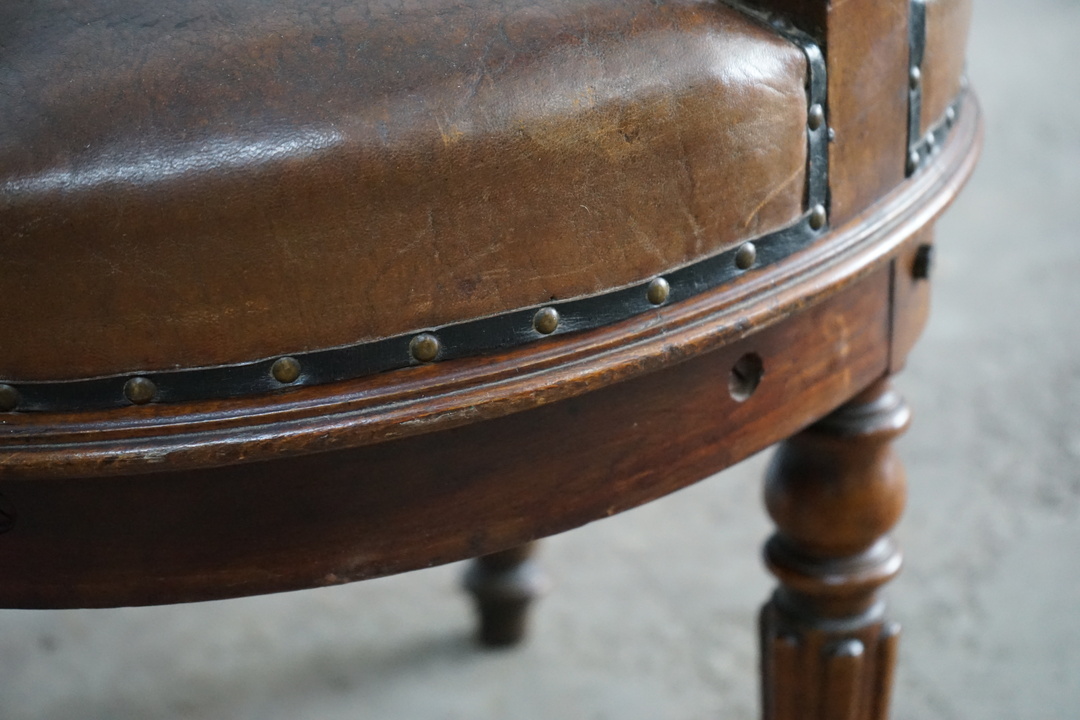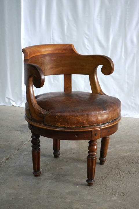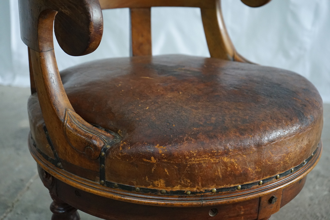 1960's ANTIQUE LEATHER SWIVEL CHAIR