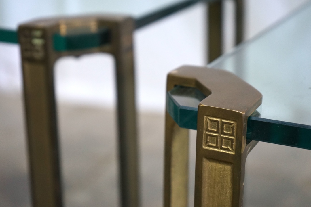 BRASS & GLASS COCKTAIL TABLE BY DESIGNER PETER GHEZY