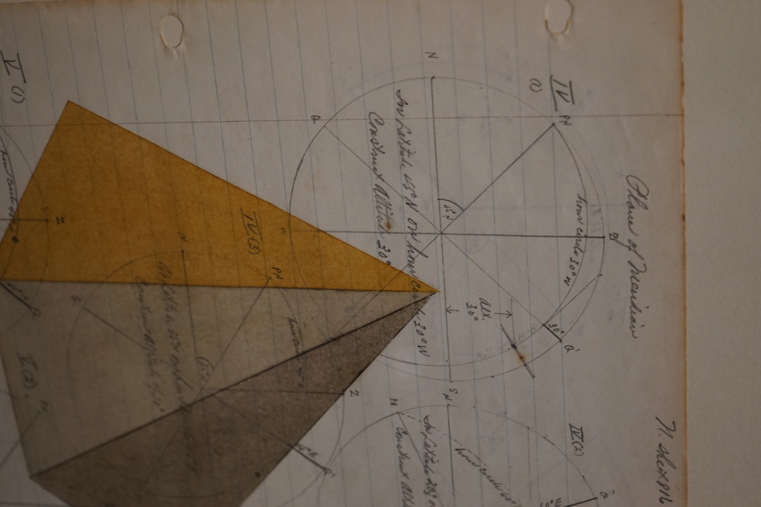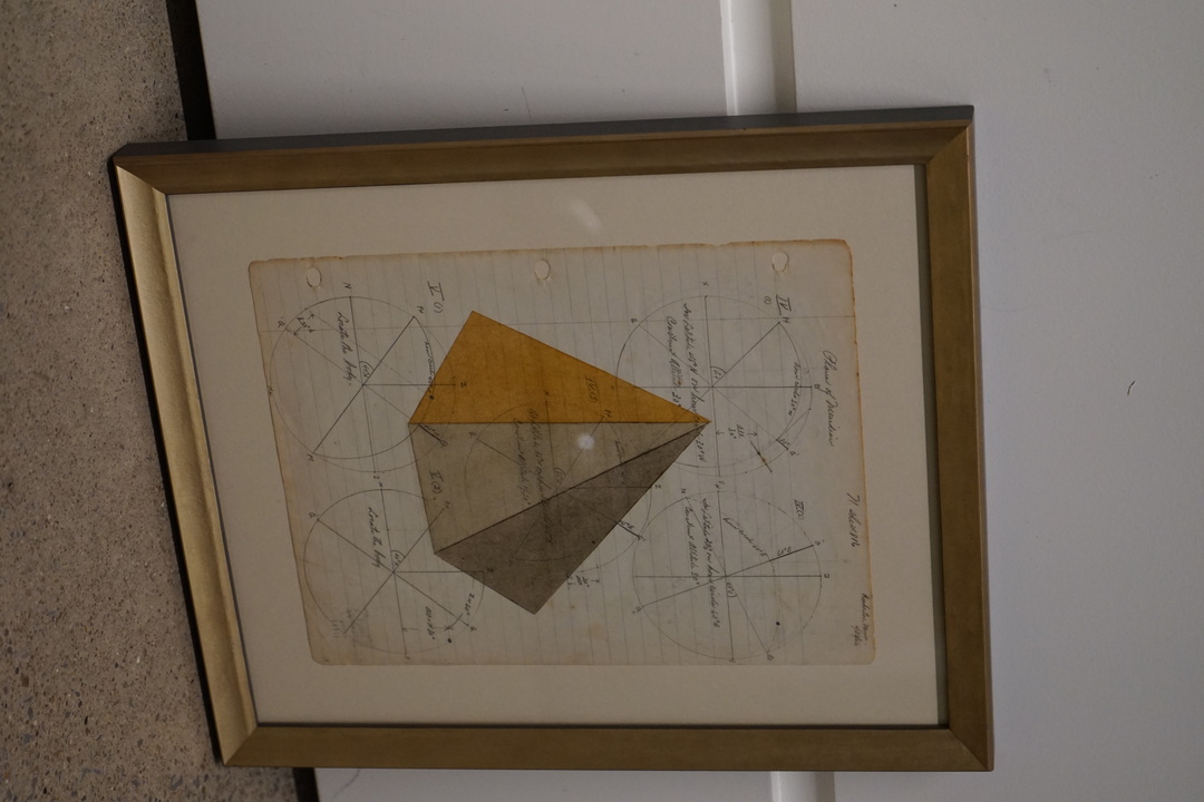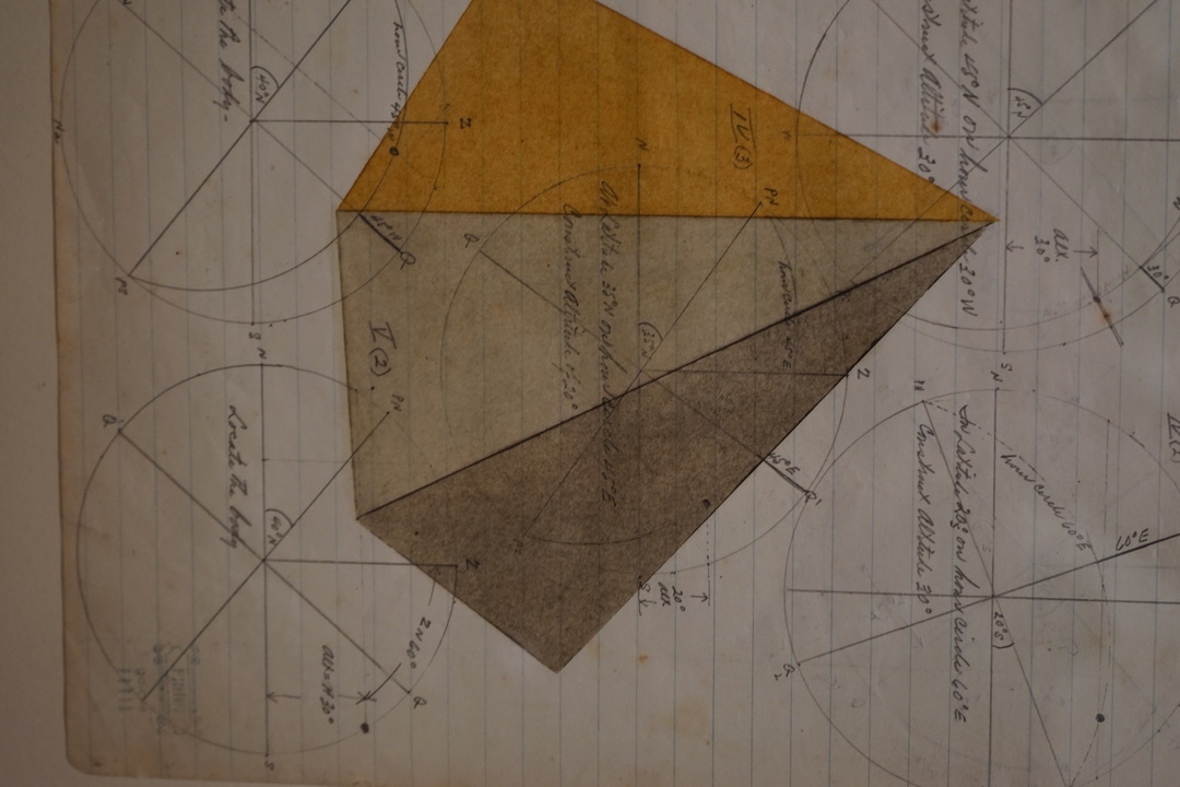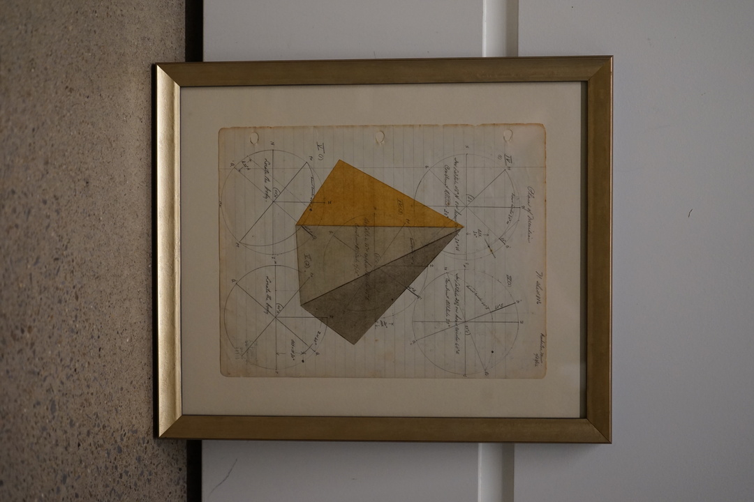 SMALL GEOMETRIC OIL PASTEL ON VINTAGE LEDGER PAPER IN THE STYLE OF SOL LEWITT