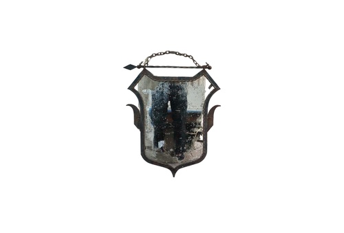 Shield Wrought Iron Mirror with Mercury Glass, Ca. 1940s