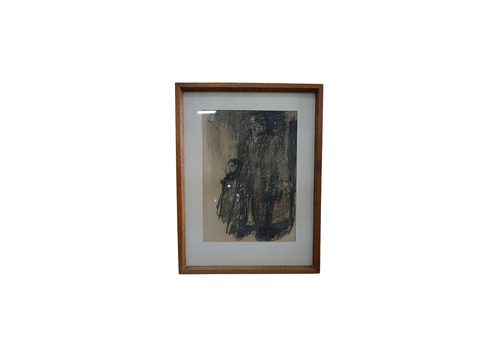 CHARCOAL OF ALLY IN HUNGARY, "LOOKING INTO THE PAST", FRAMED AND SIGNED