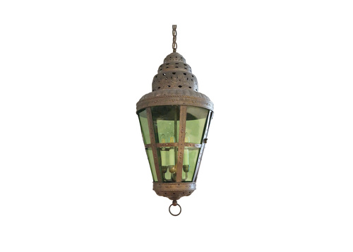 Spanish Copper Lantern with Green Glass, Newly Wired