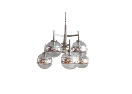 Six Light Italian Glass Chandelier with Striped Globes and Chrome Arms, Newly Rewired