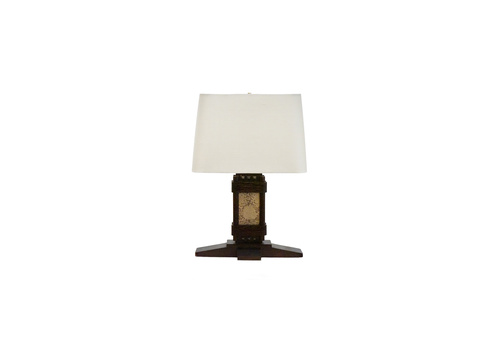 Oak Table Lamp with Snakeskin & Brass Nail Detail, Newly Rewired with New Shade