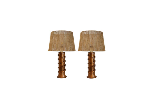 Copper Italian Lamp with Contemporary Rattan Shade, 1960-1970's Newly Wired