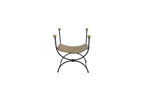 Wrought Iron and Brass Savonarola Leather Sling Stool