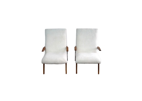 Mid-Century Newly Recovered Armchair with Oak Frame and Brass Detail, Italian