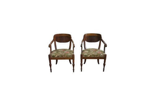 Wood Art Deco Armchair with Carved Wood Back and Legs, Original Upholstery on Seat
