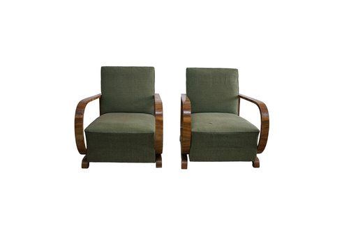 ART DECO ARMCHAIR IN GREEN UPHOLSTERY