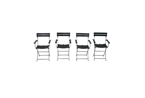 Black Leather and Metal Armchair in the Style of Jacques Adnet