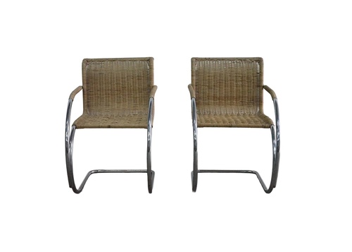 Chrome and Rattan Armchair in the Style of Mies van der Rohe