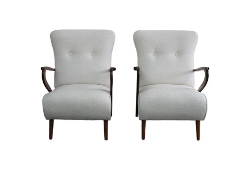 Upholstered Armchair with Sculptural Wooden Arm, Attributed to Paolo Buffa